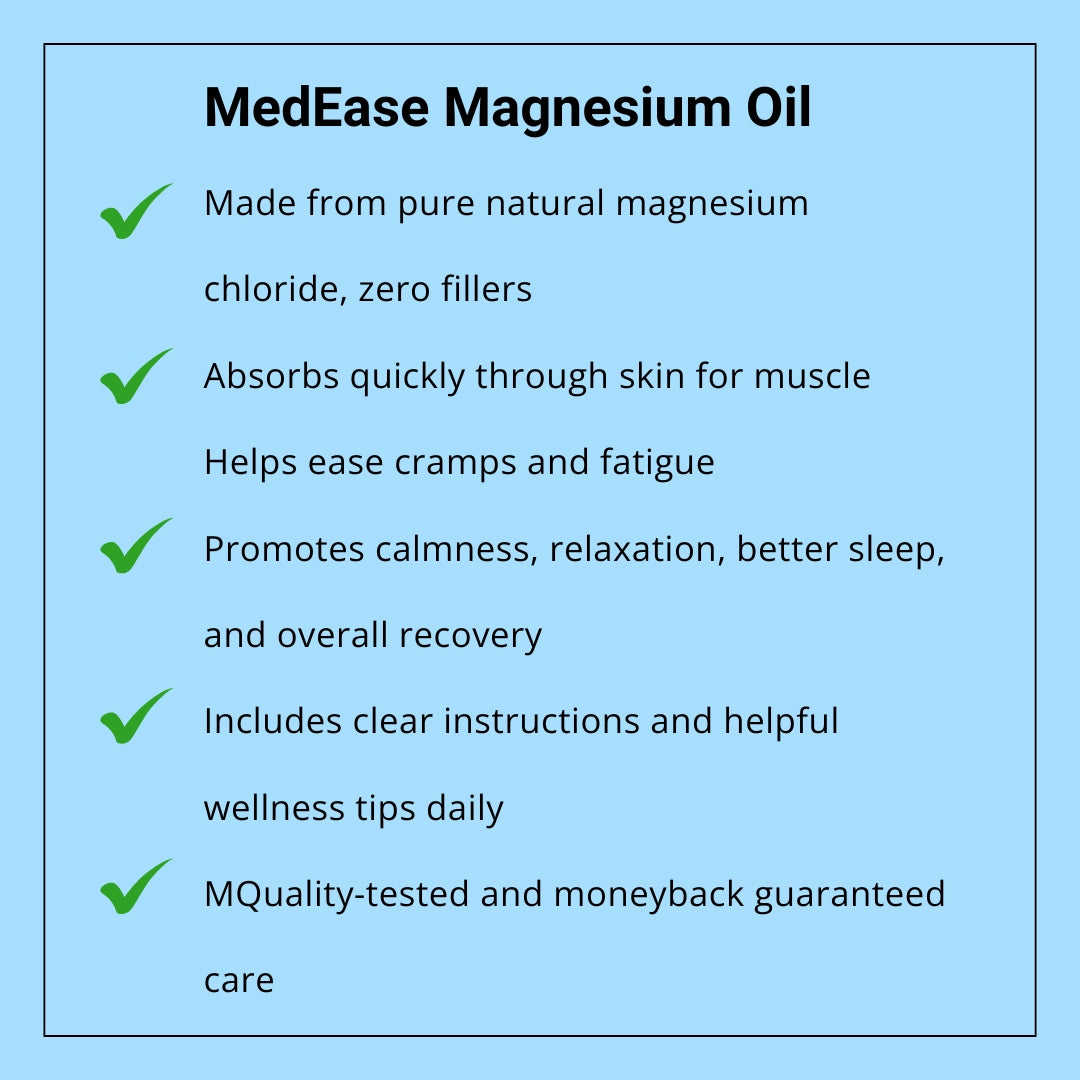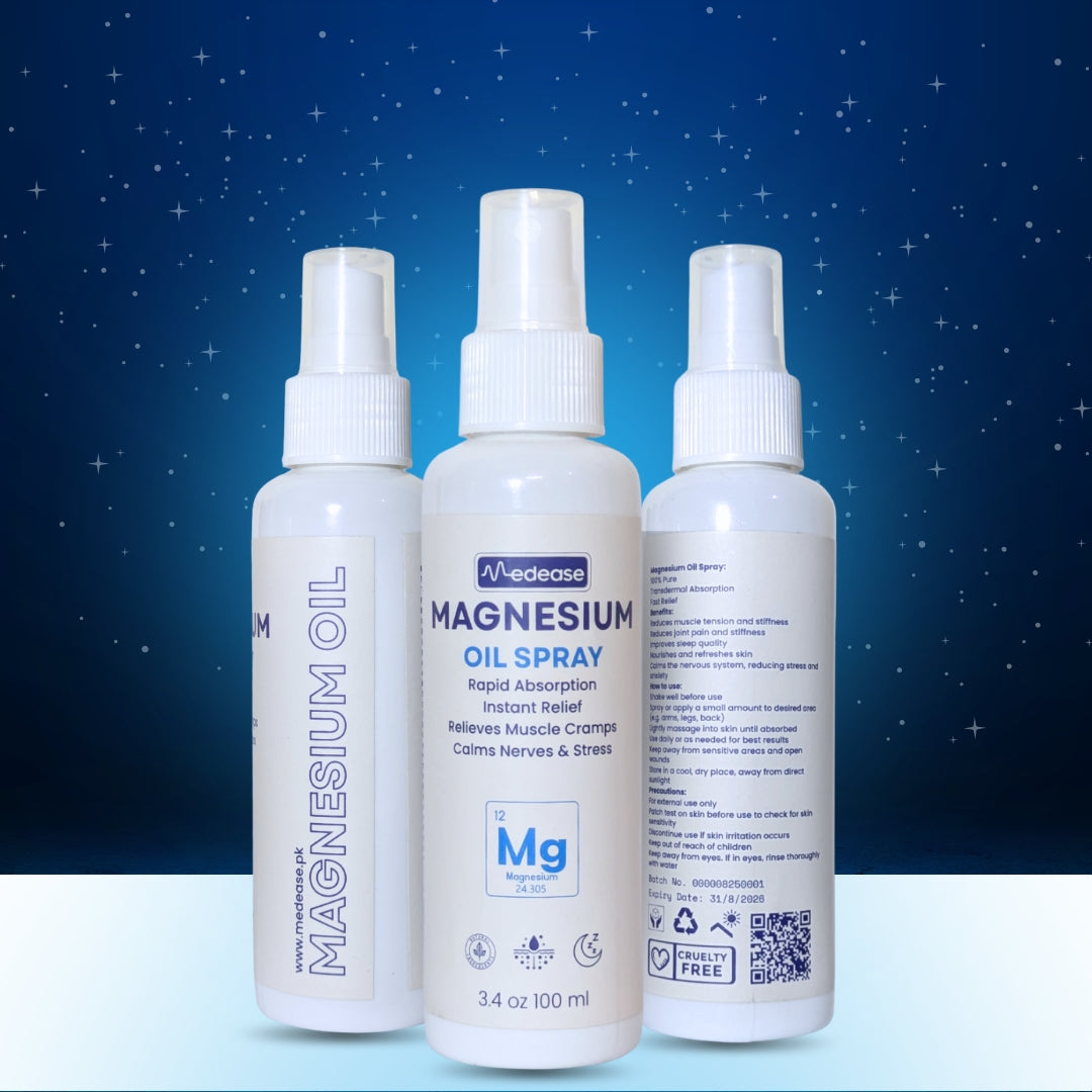 Magnesium Oil Spray is a natural wellness essential designed to rejuvenate your body and mind. Made from pure magnesium chloride, it offers rapid absorption through the skin, helping to relieve muscle cramps, joint stiffness, fatigue, and stress — while supporting better sleep and overall vitality.