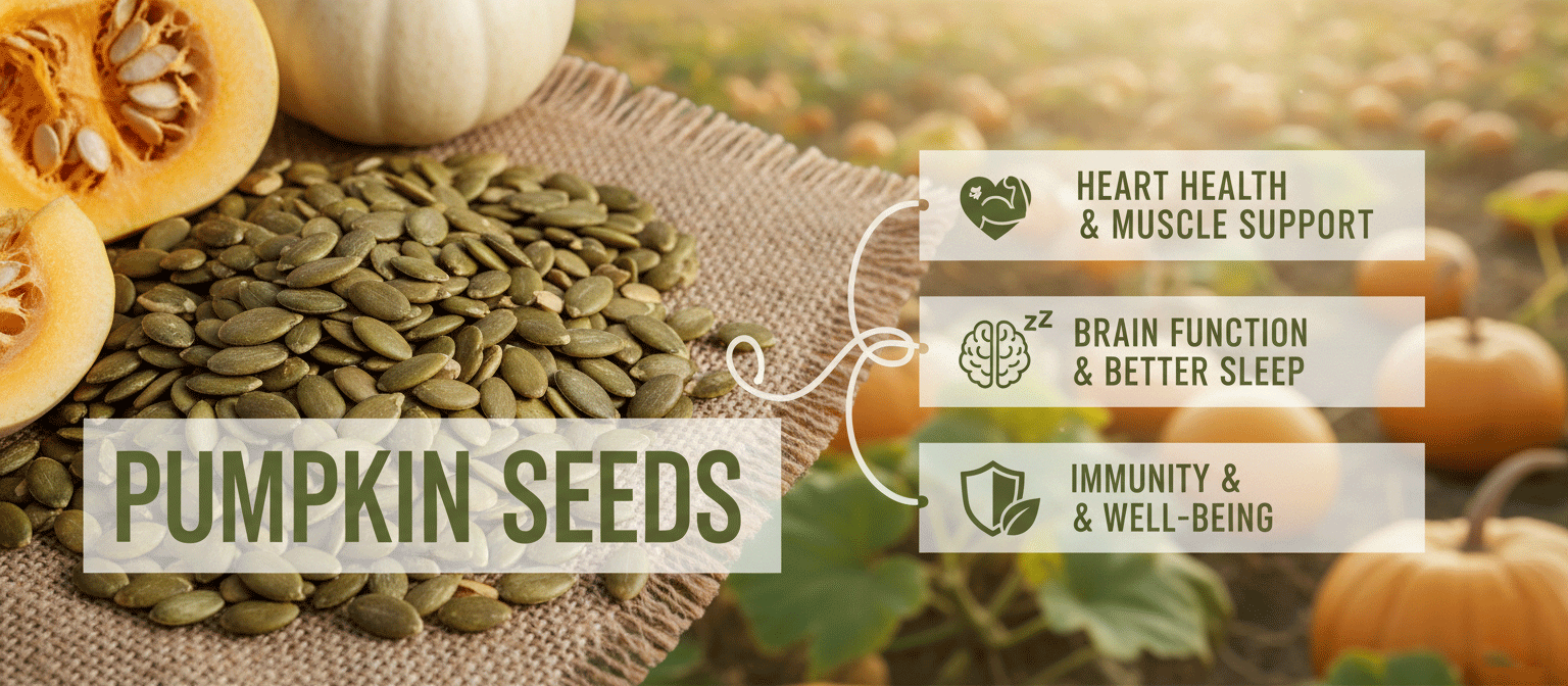 Pumpkin seeds, also called pepitas, are small, flat, and green seeds that come from the inside of pumpkins. They have been valued for centuries for their rich, nutty flavor and powerful health benefits. Packed with plant based protein, healthy fats, and a wide range of vitamins and minerals, pumpkin seeds are a nutritional powerhouse.