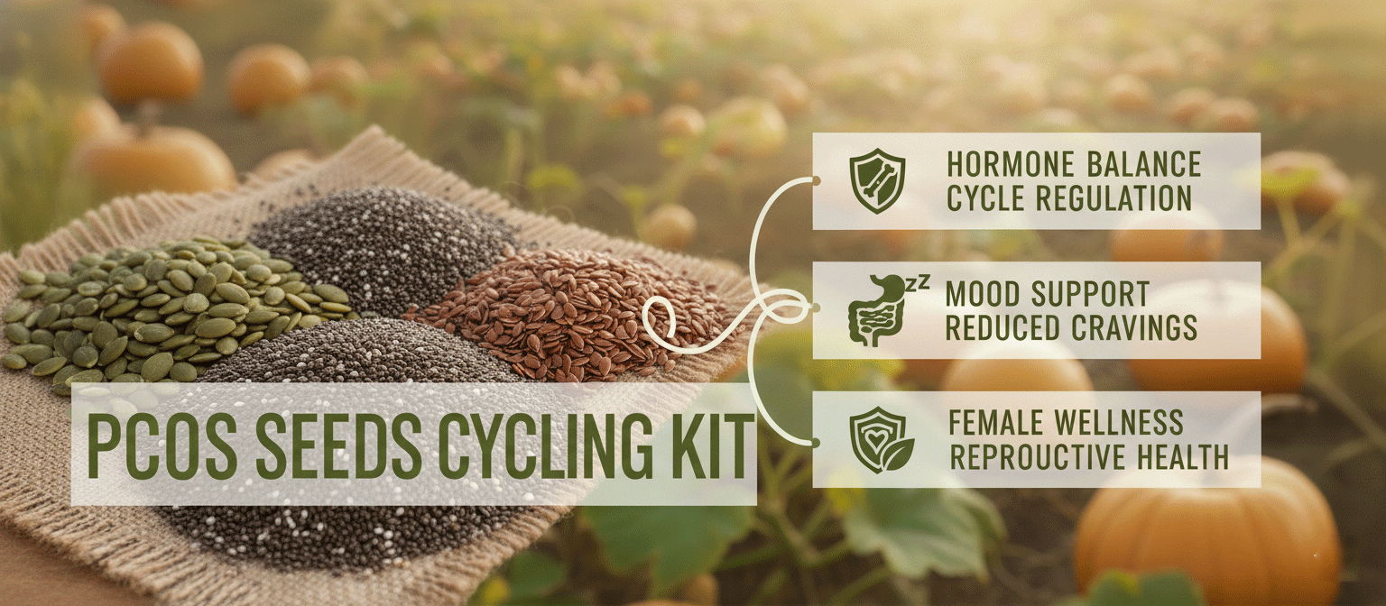 PCOS Seed Cycling Kit – Natural Hormone Balance with Flax, Pumpkin, Sunflower & Sesame Seeds